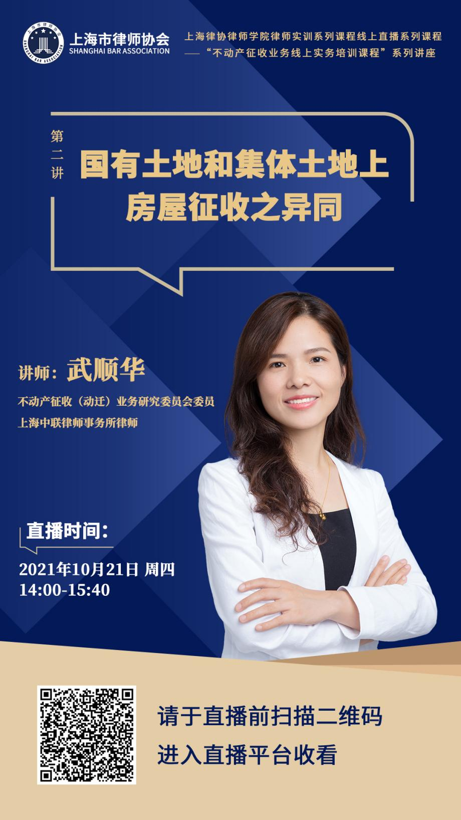 主講人:武順華,上海律協不動產征收(動遷)業務研究委員會委員、上海中聯律師事務所律師