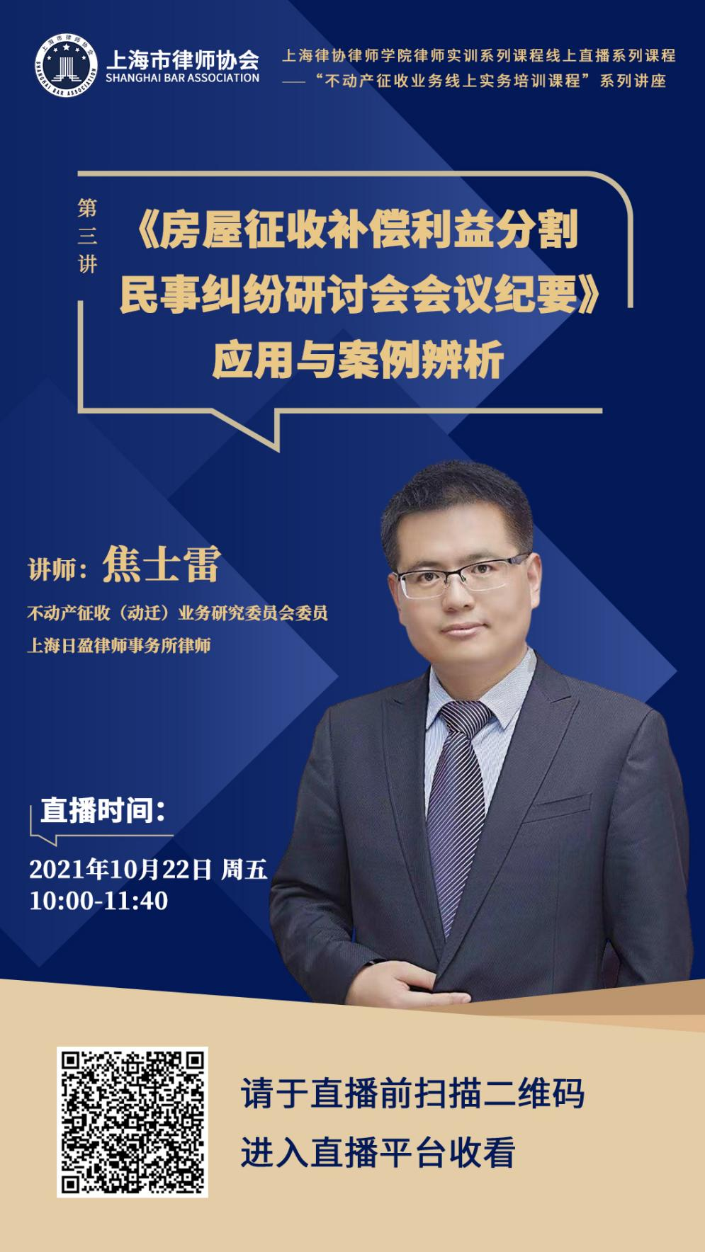 主講人:焦士雷,上海律協不動產征收(動遷)業務研究委員會委員、上海日盈律師事務所律師