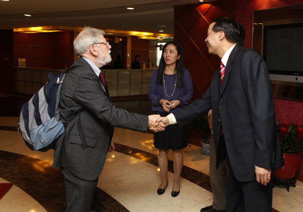 2011年10月20日,英國(guó)曼徹斯特大學(xué)Frank Stephen教授與中國(guó)政法大學(xué)張卿副教授拜訪上海市律師協(xié)會(huì),就中歐法學(xué)院研究項(xiàng)目“法律職業(yè)監(jiān)管的中歐比較”進(jìn)行調(diào)研。上海市律師協(xié)會(huì)紀(jì)律委員會(huì)主任蔣信偉、紀(jì)律部主任黃嘉及對(duì)外交流部主任賈明輝接待了Frank教授一行。