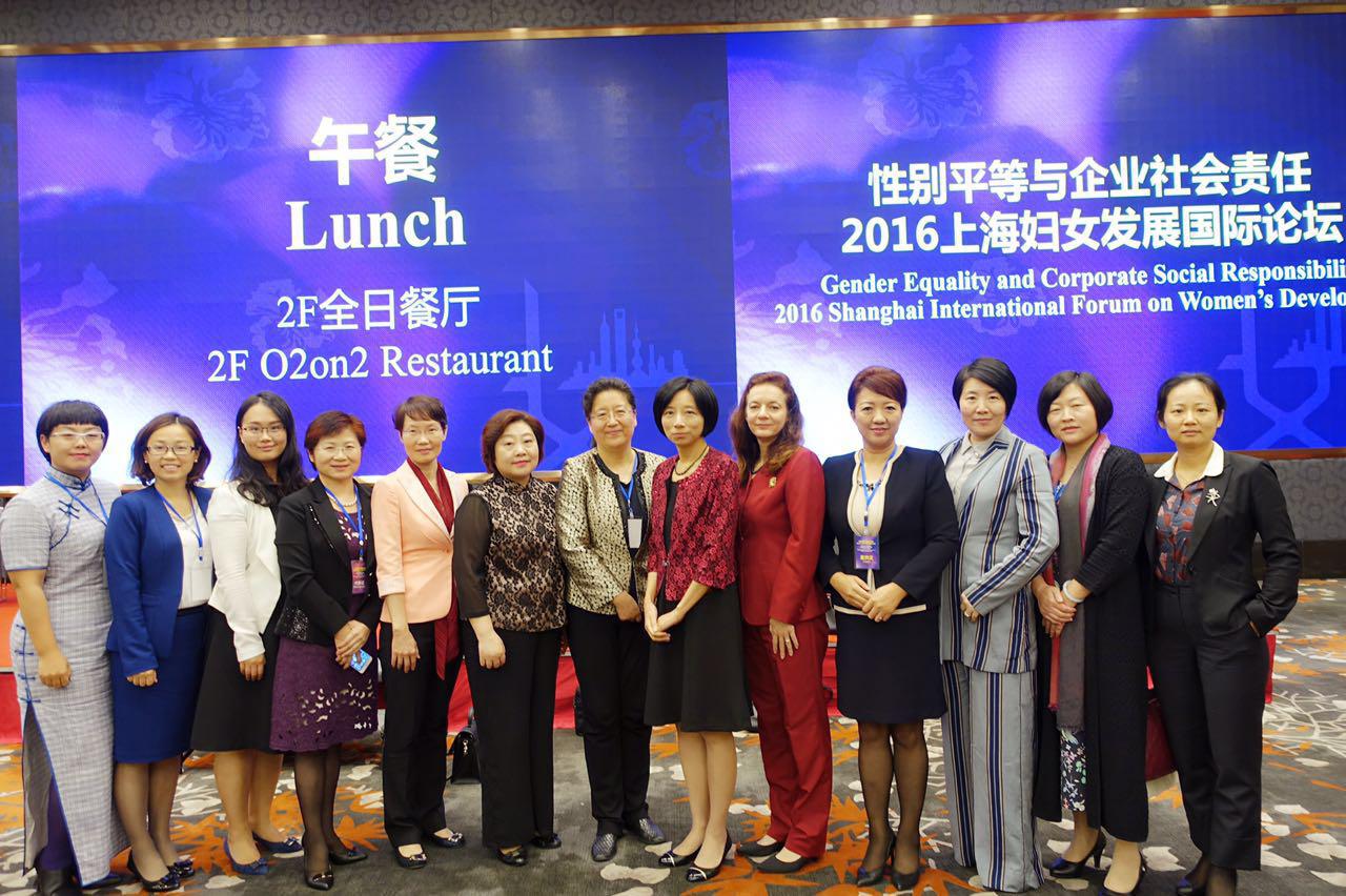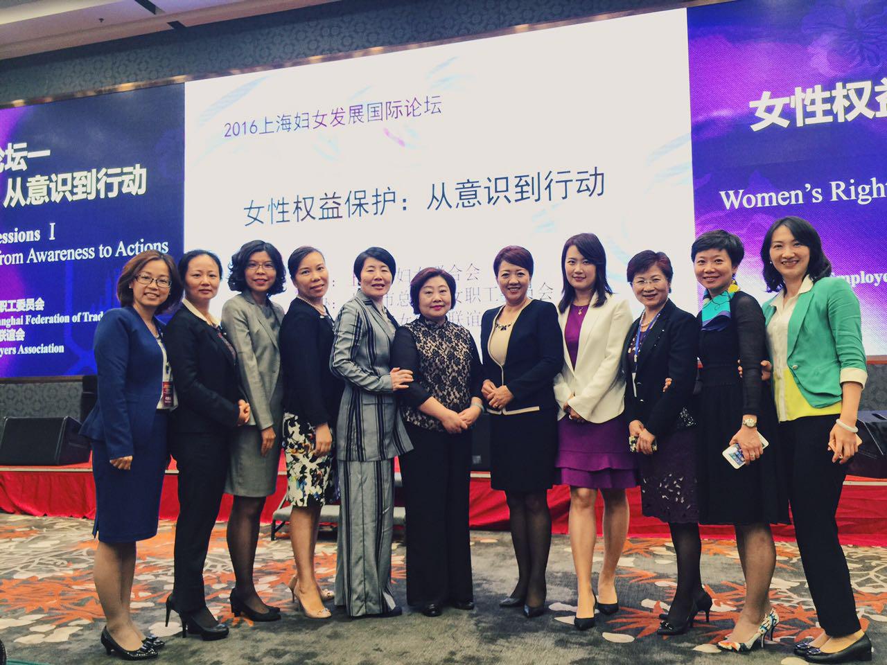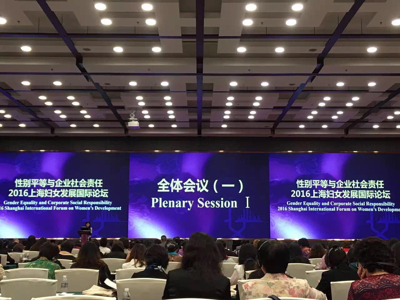 2016年10月21日,由上海市婦女兒童工作委員會、上海市婦女聯合會主辦的"2016上海婦女發展國際論壇"在上海龍之夢大酒店四樓宴會廳召開,本次大會以"性別平等與企業社會責任"為主題,邀請國內各行業女性領導者、學術專家,以及多國女性組織負責人、研究學者共同參與,現場300余位與會者共同探討國內外性別平等與企業社會責任的機遇和挑戰。上海市人民政府副市長時光輝先生、中華全國婦女聯合會國際聯絡部副部長趙紅菊女士、上海市婦女聯合會主席徐楓女士、副主席何惠娟女士、黎榮女士、黃綺女士、聯合國婦女署中國項目主任湯竹麗女士等領導嘉賓到場致辭。