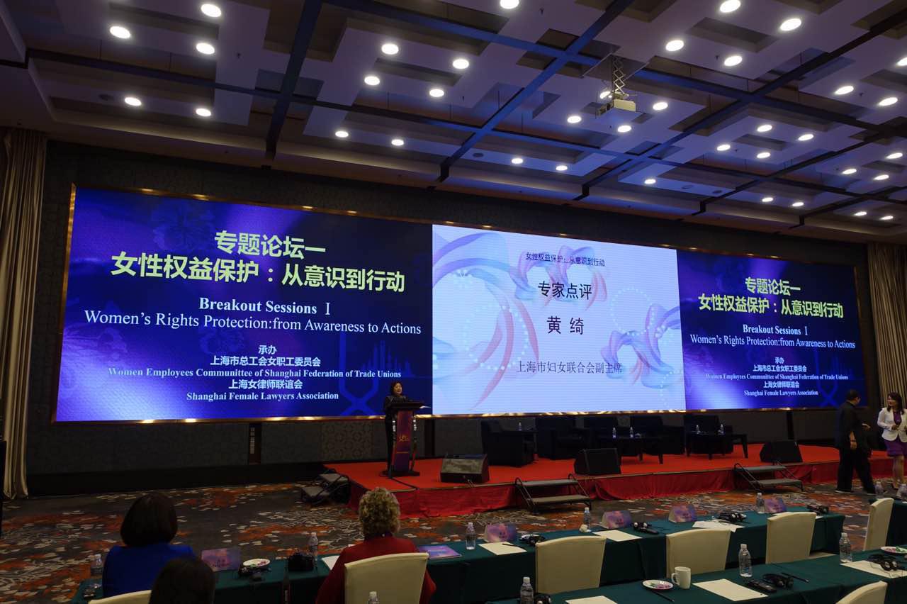 下午的專題論壇是由上海市總工會女職工委員會與上海市女律師聯誼會共同承辦。專題論壇以“女性權益保護:從意識到行動”為題,由上海廣播電視臺著名主持人方舟女士主持。