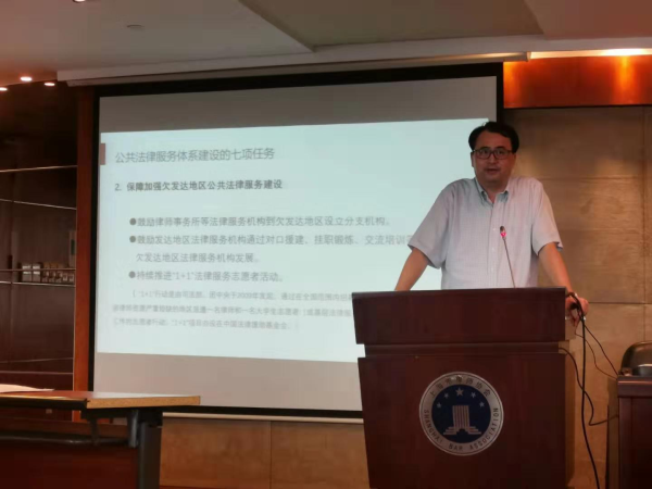 公共法律服務建設委員會主任毛惠剛律師從宏觀層面系統講解律師在公共法律服務體系建設中的具體任務和相關配套政策,從兩辦《關于加快推進公共法律服務體系建設的意見》文件的精神中提出的三個問題,即為什么要推進公共法律服務體系建設、公共法律服務體系建設的七項任務以及如何推進公共法律服務體系建設。