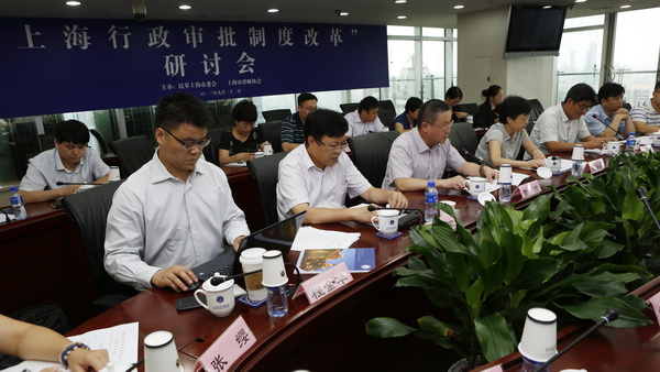 民革市委理論委員會主任臧志軍,民革靜安區委秘書長周偉,民革華東政法大學支部副主委程金華,市律協行政法律業務研究委員會沈偉民律師、副主任王昊東律師以及市律協國際貿易與反傾銷業務研究委員會主任趙平律師分別作了主題發言,每個人都結合自身工作的實際從不同角度分析了上海行政審批制度改革的目標、路徑、方法、面臨的問題以及政策建議等。