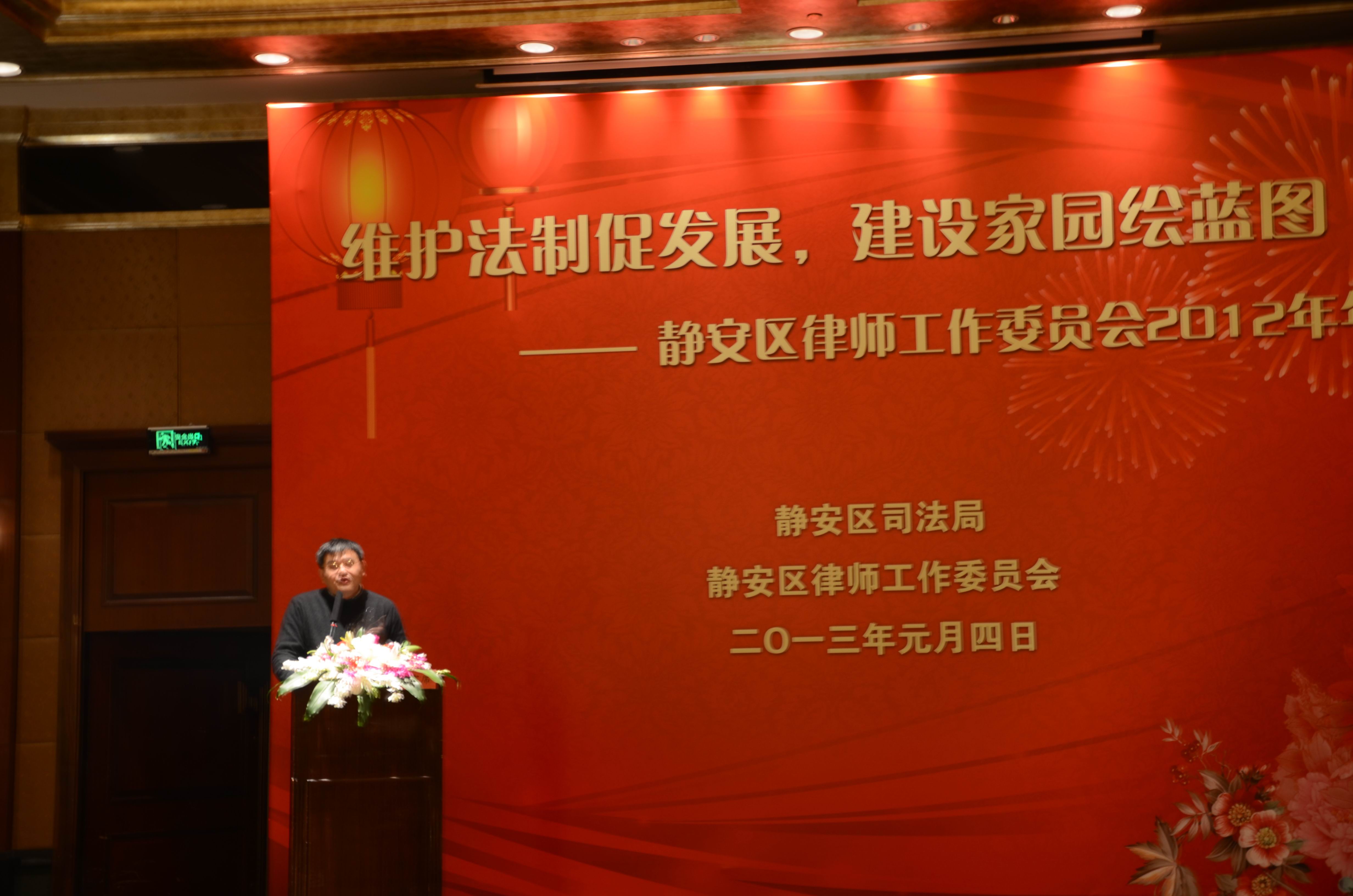 各位領導在聽取了唐主任的匯報后指出,2012年全區律師迎難而上,在律師行業創收創歷史新高的同時,全面參與“11·15”火災善后處理、人民調解、法律援助、信訪接待、醫患糾紛化解等維穩工作,情系民生、執業為民,受到基層群眾熱烈歡迎并圍繞依法治區等區重點法制建設工作,組建依法治區律師顧問團,召開靜安律師參與依法治區研討會,充分展示了律師在建設社會主義法制社會中的重要作用。當前,“建設國際靜安,構建和諧家園”是我區的工作目標。全區律師要緊緊圍繞這一中心,積極拓展服務領域,充分發揮職能作用,努力維護社會穩定,為2020年前基本實現現代化國際城區建設而努力。