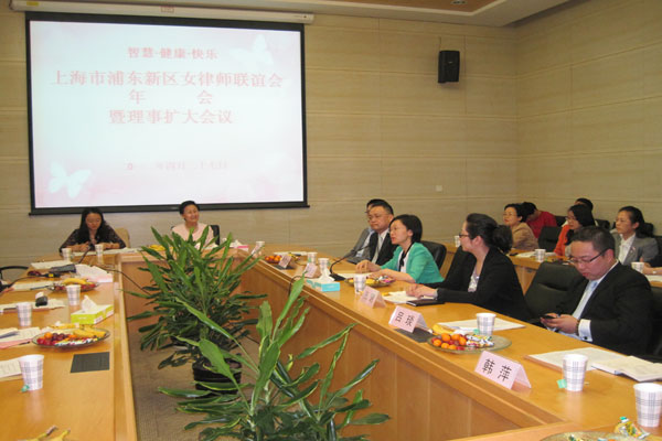 4 月27日 ,浦東新區女律師聯誼會舉行年會和理事擴大會議。由張秀華副會長主持,吳平會長總結2011年工作,確定2012年工作安排,來自瑛明、通力、中倫、融孚、協力、喬文、錦天城、申達、中筑、輝煌、公民等所的30多位到會女律師依次發言。