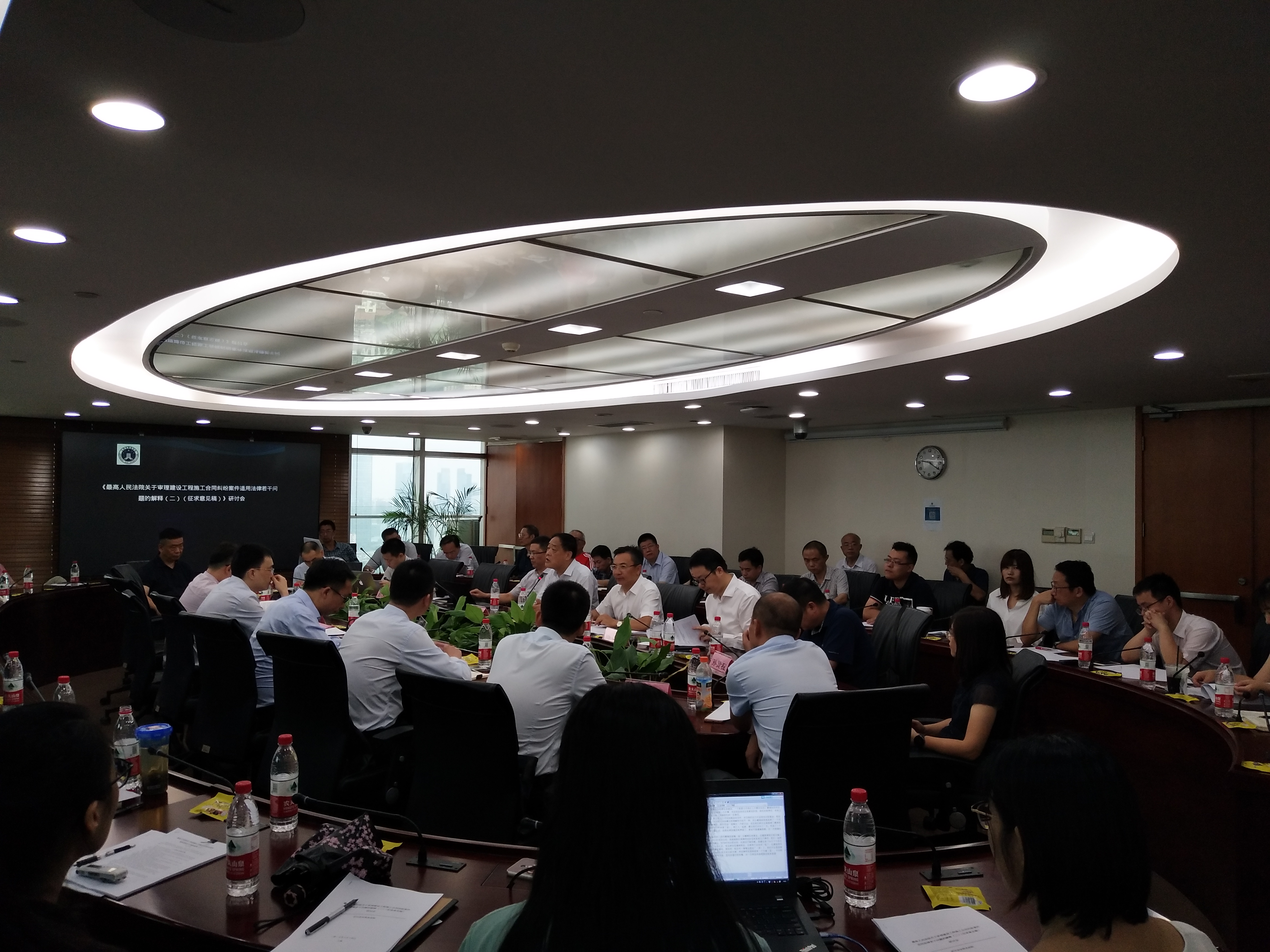 2017年8月14日,市律協建設工程與基礎設施業務研究委員會聯合市建筑施工行業協會、市市政公路行業協會、市工商聯房地產商會法律分會、建筑時報在律協第一會議室舉辦了關于《最高人民法院關于審理建設工程施工合同糾紛案件適用法律若干問題的解釋(二)(征求意見稿)》(以下簡稱“《司法解釋二》”)的研討會。市律協建設工程與基礎設施業務研究委員會主任周吉高律師主持會議,上海市建筑施工行業協會副會長龔一民、上海市市政公路行業協會副秘書長彭榮鋒、上海市工商聯房地產商會法律分會副會長陸國飛、建筑時報主任孫賢程以及本市建設工程及基礎設施領域的專業律師共50多人參加了本次會議。