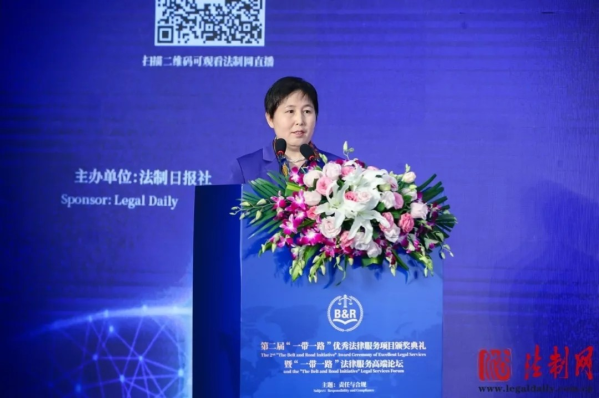 司法部國際合作局副局長尹雪梅指出“一帶一路”法律服務高端論壇對優化“一帶一路”法律服務工作、規范企業投資經營行為、合法合規經營意義深遠。司法部國際合作局愿意為涉外法律工作者繼續提供更多的支持和幫助,讓我們的涉外法律服務工作更多、更好地參與到國際舞臺的競爭中去,在“一帶一路”建設中,發出中國聲音,在國際法律事務中掌握更多話語權,向世界展示更加真實生動的法治中國形象。