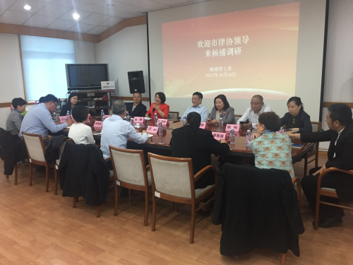 座談會(huì)由楊浦律工委主任厲明主持,楊浦區(qū)律公科科長(zhǎng)童輝及鐘穎、廖佩娟、吳益民、徐微徨等楊浦區(qū)律師代表參加。