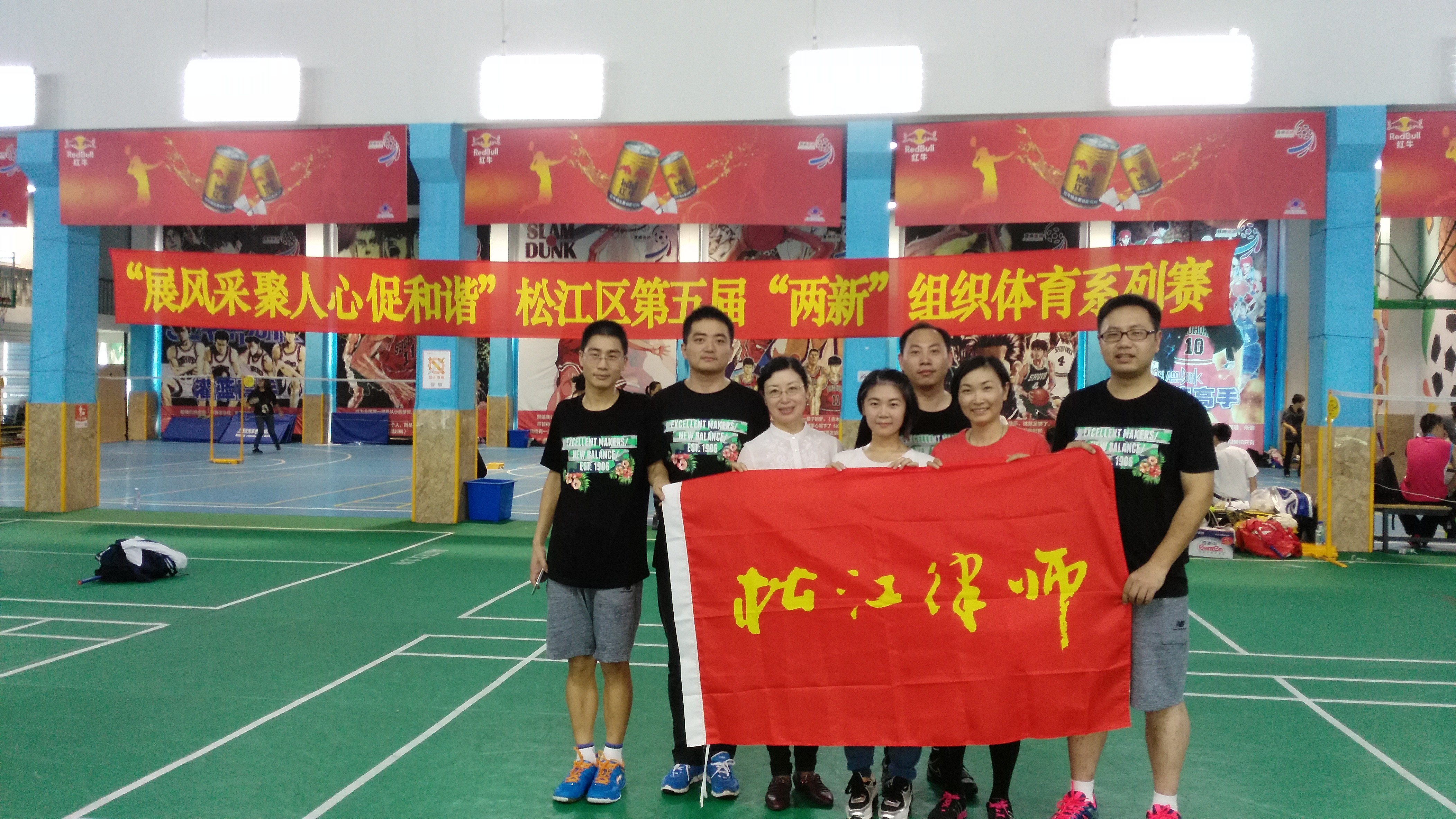 11月7日,松江律師羽毛球隊參加區社會工作黨委和區體育局聯合舉辦的區第五屆“兩新”組織體育系列比賽中的羽毛球賽。比賽在本區茸城體育中心舉行,松江律師隊先后與事先抽簽決定的對手車墩旗升電氣隊和新橋銀都駕校隊,分別以男單、女單、男、女混合雙打的方式激戰,經過幾個小時的奮力拼搏,松江律師隊不敵強手,忍痛出局。