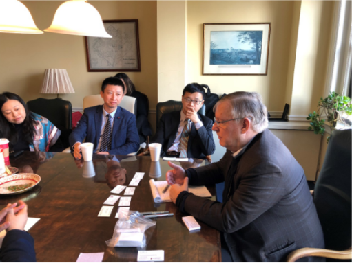 參觀完國會山后,我們前往Asia & Middle East International Law Group P.C進行交流。短短兩小時,事務所管理合伙人Timothy B.Mills律師就學員們關心的律所發展、律所模式、律師梯隊建設、中美律所合作等問題,結合自身經歷,給了很多建設性的意見。通過這樣的交流,能幫助我們更好了解美國同行,也會在未來增加互相合作的機會。