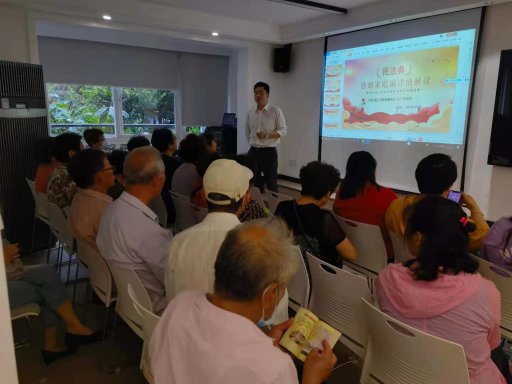 2021年5月11日下午,黃浦青年律師民法典宣講團成員,上海華夏匯鴻律師事務所杜廣宇律師應黃浦區五里橋街道邀請,面向五里街道的紫荊居委、龍華居委兩個居委的工作人員及居民,在紫荊居委會舉行了主題為《民法典—婚姻家庭編與繼承編的解讀》的講座。紫荊與龍華居委共有40余位居民參加了講座。