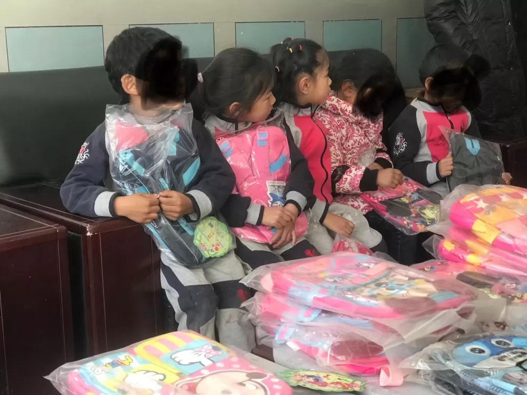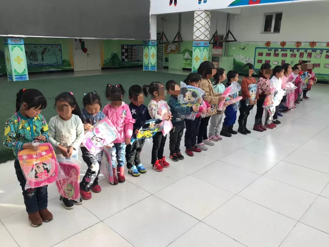 此外,我們還向兩所幼兒園的低保戶孩子統一發放了書包。