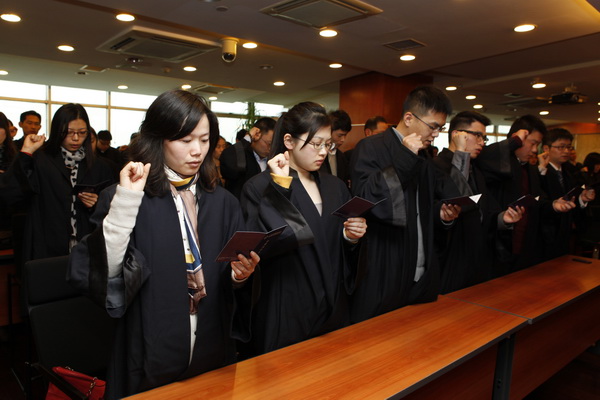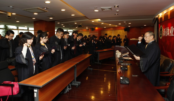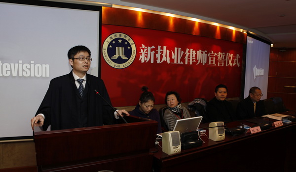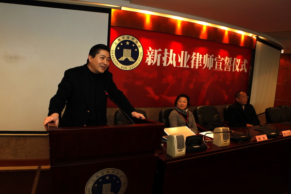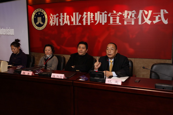 2012年2月29日下午,100余位新律師身披律師袍在市律協報告廳內莊嚴宣誓。上海市律師協會副會長陳乃蔚,首屆東方大律師、上海市聯合律師事務所合伙人江憲律師及上海市律師協會副秘書長陳東出席了儀式。