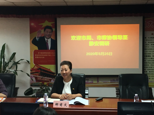 5月25日下午,上海市律師協會會長季諾、副會長鄒甫文,上海市司法局律工處處長葉斌等一行到靜安區律工委開展調研。區司法局局長凌淑蓉、專管科科長程茂娣、律工委主任王昊東以及部分律公委委員、律師代表出席調研活動。
