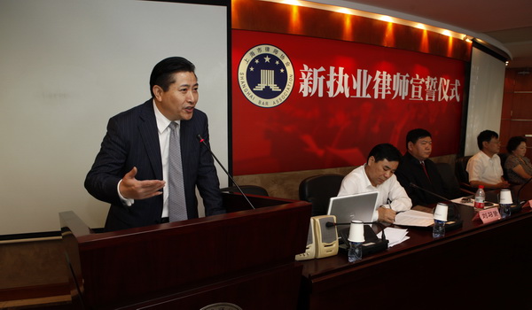 最后,市律協陳乃蔚副會長上臺致辭。陳會長用質樸而又真誠的話語,向新律師們暢談了自己的人生感悟,他鼓勵新律師們要將坎坷和艱辛化作財富,不斷學習,準確定位,要把律師職業視為自己崇高的事業而為之努力奮斗。