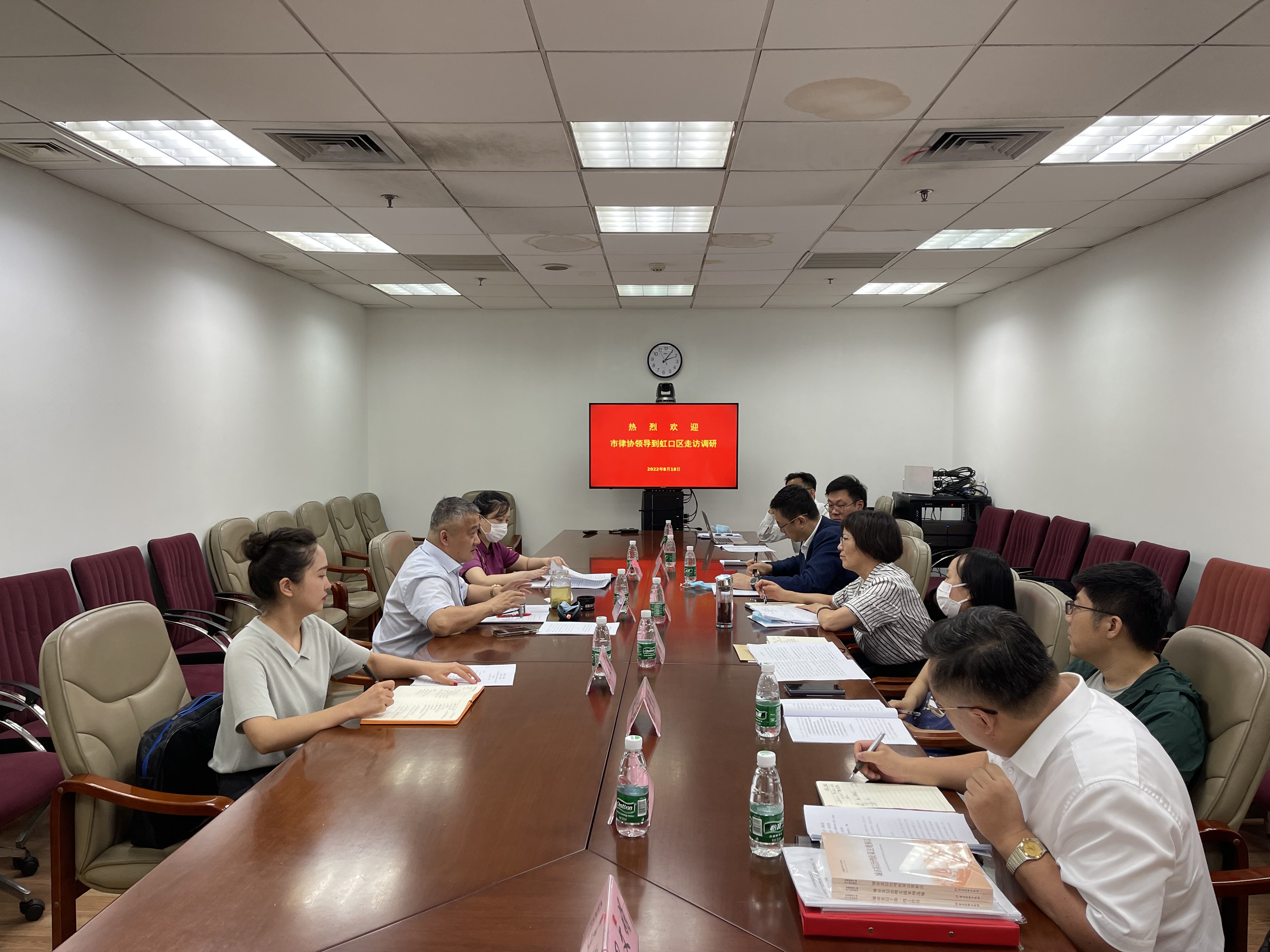 2022年8月18日下午,上海市律師協會副會長潘書鴻、辦公室主任陶麗萍等一行到虹口區走訪調研,虹口區司法局副局長胡曉紅、律公科科長黃琲、律工委主任田波及部分虹口區律師代表參加了調研活動。