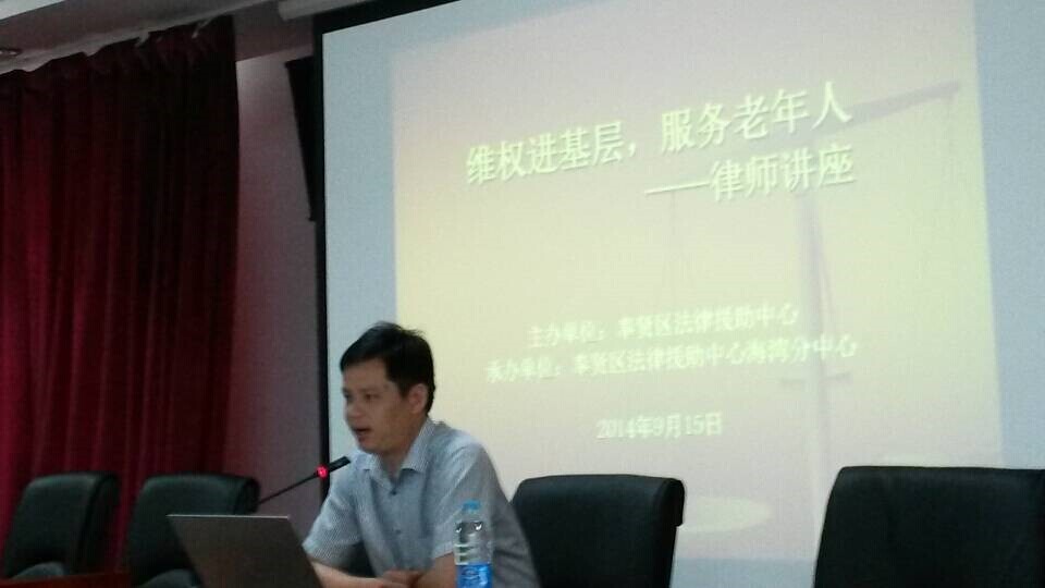 為進(jìn)一步提升老年人維權(quán)意識,2014年9月15日上午,上海兆和律師事務(wù)所主任韋家凱律師接受奉賢區(qū)海灣鎮(zhèn)司法所和奉賢區(qū)法律援助中心的邀請,來到海灣鎮(zhèn)街道社區(qū),為該社區(qū)的老年人開展了一堂《維權(quán)進(jìn)基層 服務(wù)老年人》的法律知識講座。