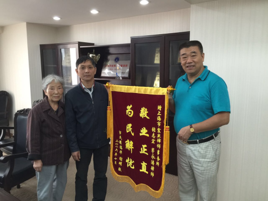 “國慶”長假剛過,兩位當(dāng)事人特意再次來到震旦所,用送錦旗的方式表達對震旦所和承辦律師的謝意。上海市震旦律師事務(wù)所主任邵曙范律師在總結(jié)這個案子時表示:上海作為一個深度老齡化的城市,像潘海令這樣的失智寡居老人絕不是個案,如何進行法律創(chuàng)新、如何為這一部分群體尋求有保障的安全的晚年生活,這需要全社會共同思考和面對,更需要法律人不計回報、勇于探索。震旦所在這方面做了這一次有益的嘗試,這是一個老所應(yīng)有的社會擔(dān)當(dāng),希望以后能夠在這方面承擔(dān)更多的社會責(zé)任。