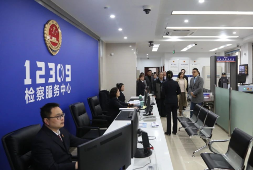 活動伊始,受邀代表一行參觀了區(qū)檢察院12309檢察服務(wù)中心等場所,聽取了檢察職能介紹,詳細了解檢察服務(wù)中心律師接待窗口的功能以及區(qū)檢察院在工作規(guī)范、硬件完善等方面落實各項保障律師執(zhí)業(yè)權(quán)利的相關(guān)措施。