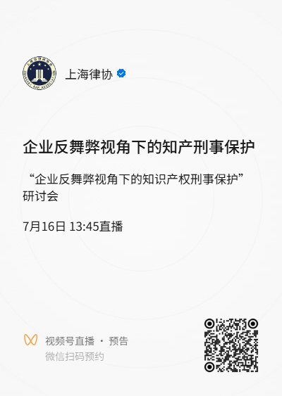 線上直播觀看鏈接:“上海律協”視頻號,可掃描下方二維碼,預約觀看