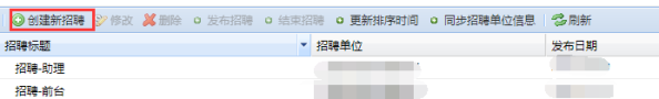 4、全部填好之后,請按“保存”。在列表選中創建好的招聘信息后點擊'發布招聘信息'即可。如需結束,點擊'結束招聘'。