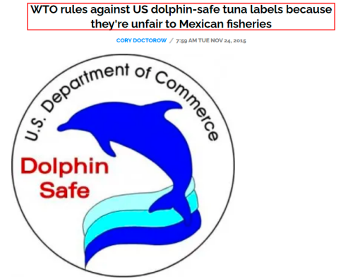 6.2.2.討論:這案件打了十年,墨西哥的捕撈方法確實有害金槍魚,而且受影響的僅僅是商標上“無害于金槍魚”字樣,但墨西哥還是根據規則提出異議,而且一度獲勝。