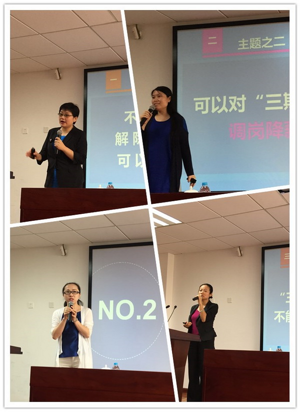 6月30日上午,在欽州南路的徐匯區委黨校三樓會場,第二場由上海市總工會女律師志愿團主講的“女職工維權案例分享會”又再舉行。案例分享會還是延續“女職工生育期間權益保護”的主題,但是PPT講稿卻在第一講的基礎上有了進一步的完善,講課的律師們也越講越好了。本次活動擔任主講的有溫陳靜、龐春云和樓凌宇三位律師,聽講的有徐匯區總工會主席等領導以及區女工干部等。律師們分別圍繞著女職工生育期間的勞動關系解除、調崗降薪等專題,以實際案例進行分析,并從法律的視角一一給出維權啟示。現場接受培訓的女工干部十分認真的聽講,并和講課律師互動著。律師的普法講座之后,閔行區婉瑩心理咨詢中心主任李婉瑩又契合維權案例進行了女工心理疏導的講座部分,也很受歡迎。