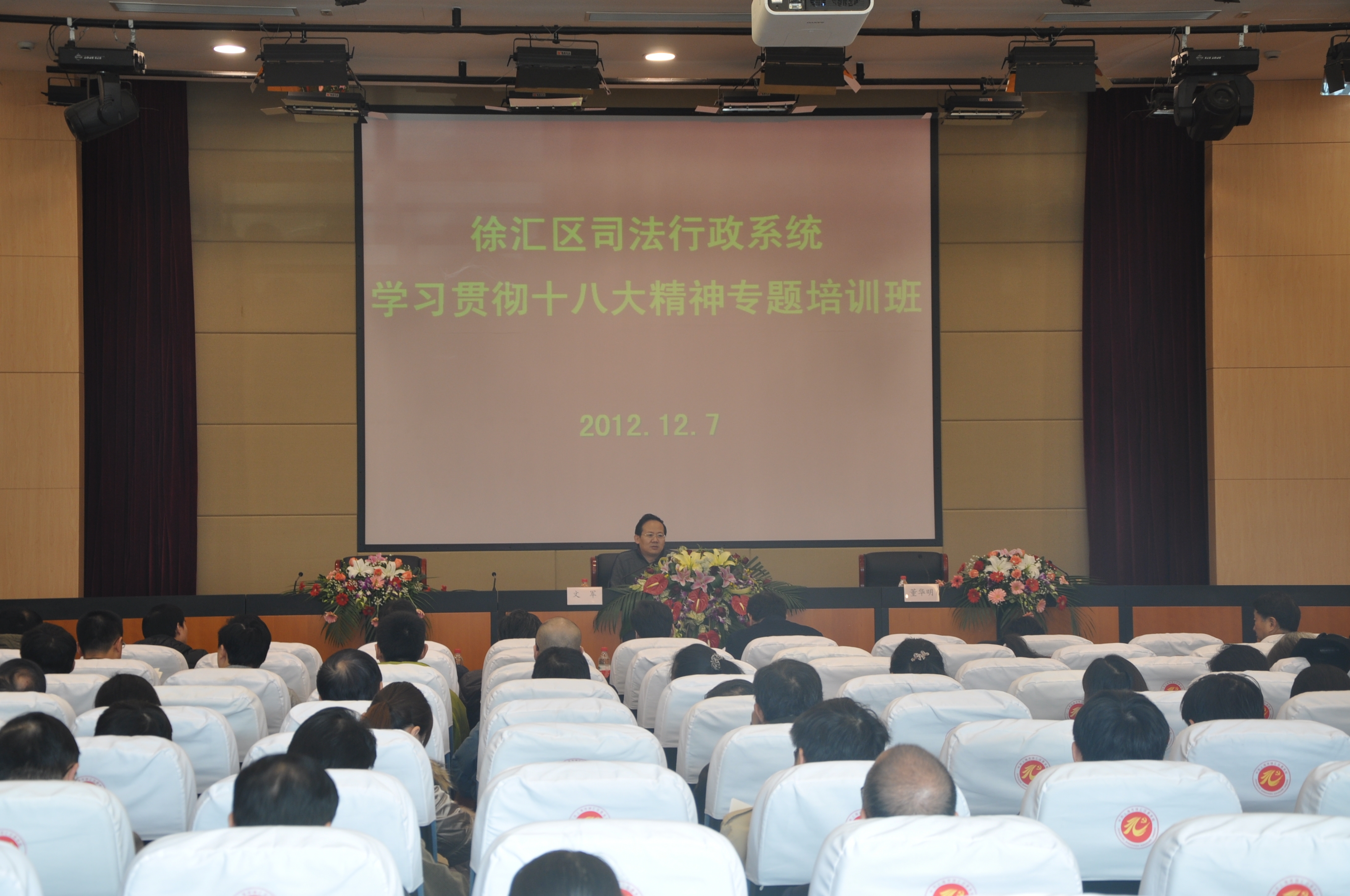 日前,徐匯區召開會期一天的司法行政系統學習貫徹十八大精神專題培訓班, 全區律師事務所主任,律師事務所黨支部書記參加會議。區司法局黨委書記、局長徐文泉同志就培訓班的舉辦和全區司法行政系統學習貫徹黨的十八大精神做了開班動員。培訓班結合司法行政系統實際,誠邀市精神宣講團成員、上海市社會學學會副會長、華師大社會發展學院黨委書記 文軍 教授、市委黨校哲學博士陳 方劉副 教授做專題輔導報告。會后,結合實際,參訓人員就如何在工作中深入貫徹十八大精神分組討論。