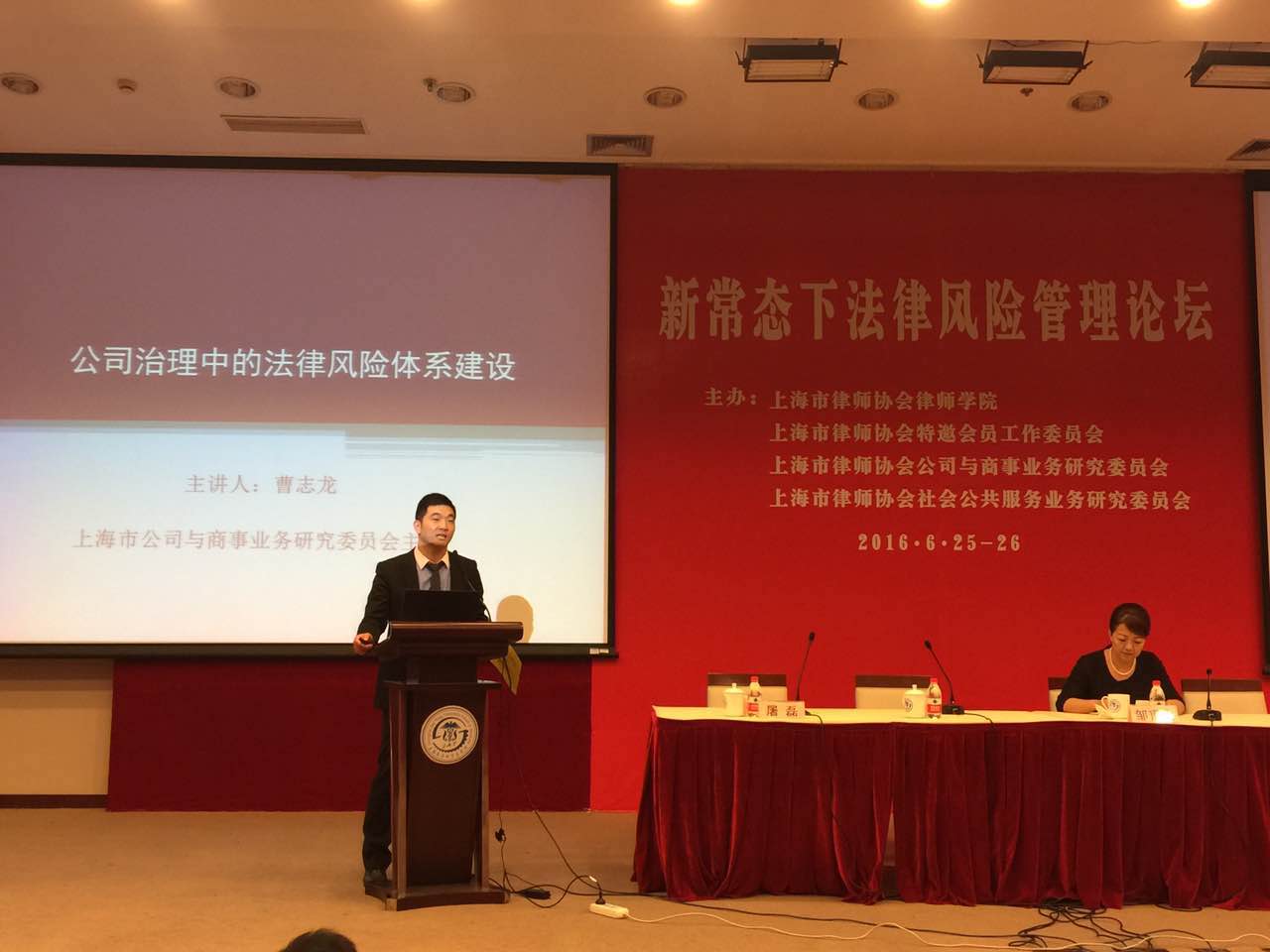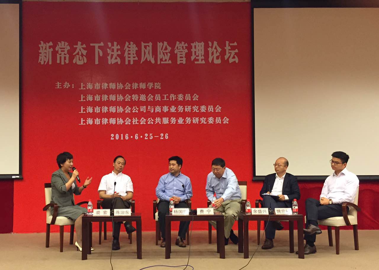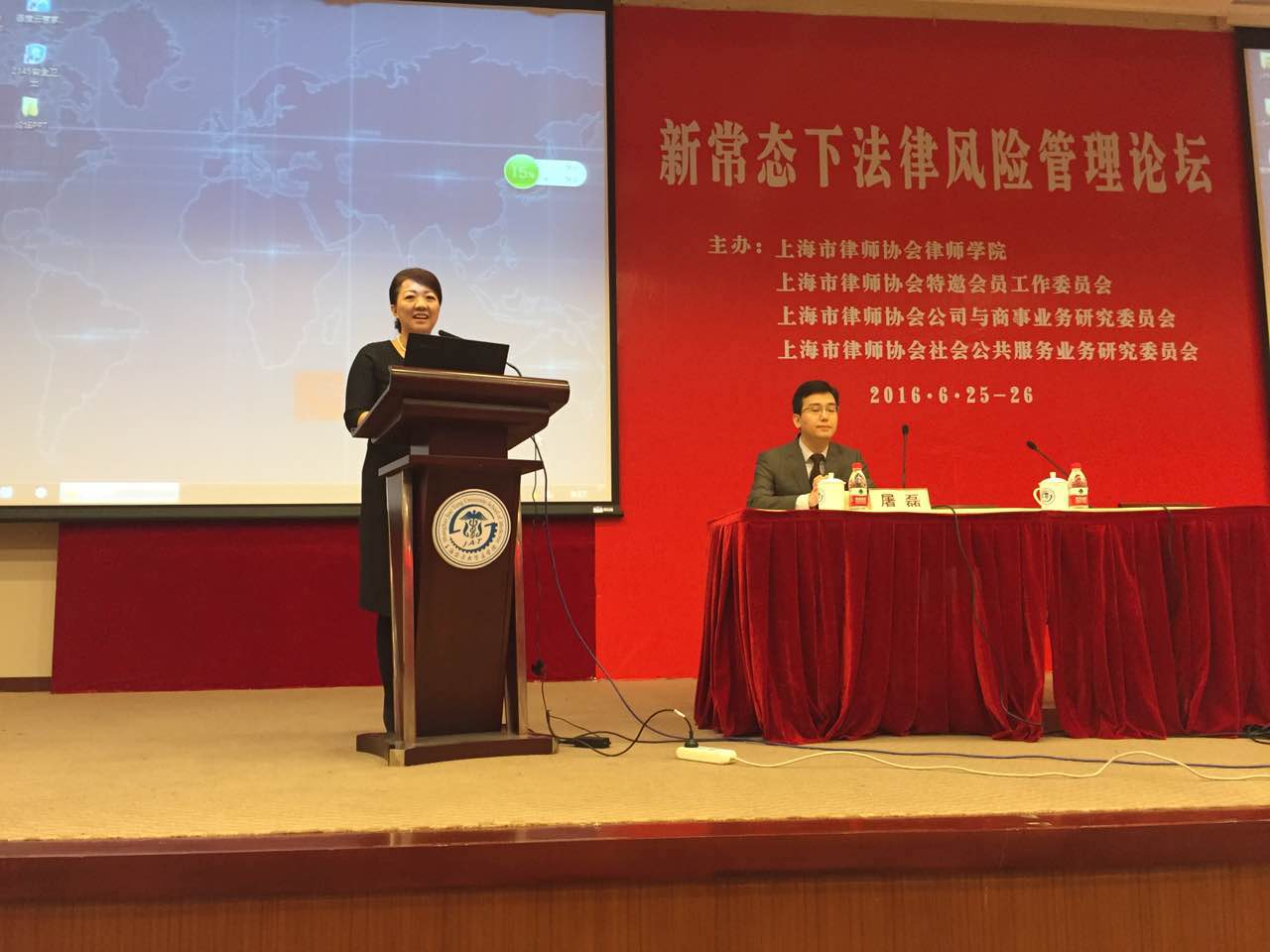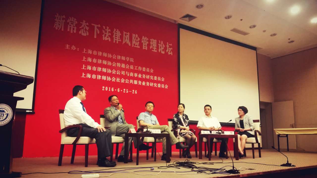 2016年6月25日、26日由上海律協律師學院、上海律協特邀會員工作委員會、上海律協公司與商事業務研究委員會和上海律協社會公共服務業務研究委員會聯合主辦的“新常態下法律風險管理”論壇于隆重召開。