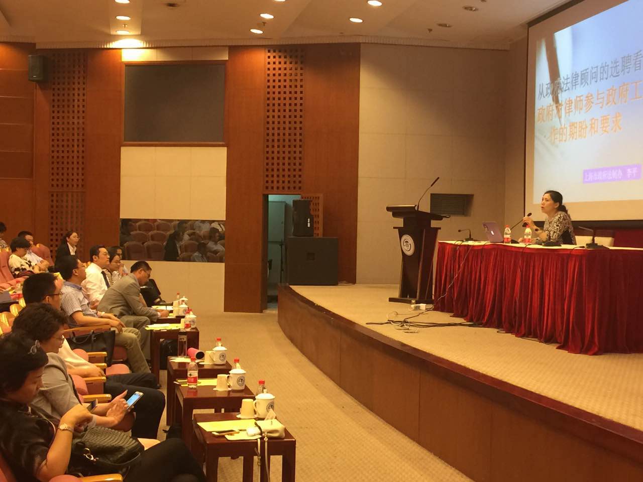 25日下午,“公共服務法律風險管理”板塊由上海律協社會公共服務業務研究委員會副主任張磊主持,主講嘉賓包括:上海市政府法制辦綜合業務處處長李平,主題為《上海政府法律顧問制度的落實、現狀與思考》;上海市質監局政策法規處副處長朱梓明,主題為《公共事件危機應對應建立律師介入機制》;上海律協行政法業務研究委員會副主任、黃浦區政府法律顧問金纓,主題為《政府法律顧問律師實務》。華東政法大學政府法治研究院院長章志遠、上海律協社會公共服務業務研究委員會主任馬永健等作為與談嘉賓也圍繞公共服務法律風險管理與政府法律顧問等問題展開了討論。