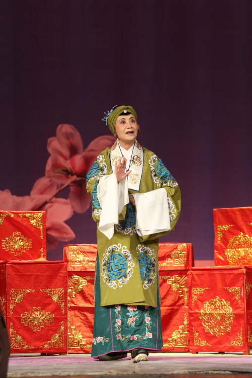 本次演出的嘉賓演唱也是一大亮點,市政協的卑根源先生的《沙家浜》唱段,嗓音高亢嘹亮;市人大的唐國才先生的《追韓信》唱段,麒派韻味雋永;作曲家沈利群老師的《智取威虎山》唱段,響遏行云,閉上眼睛,根本聽不出是一位年屆耄耋的老太太所唱的;最讓人激動的是梅大師的入室弟子、88歲高齡的畢谷云先生也興致勃勃地蒞臨指教,并即興演唱了《穆桂英掛帥》的選段。他一張嘴,臺下立刻安靜了下來,字正腔圓、神完氣足的梅派唱腔回蕩在劇場里,余音繞梁,久久縈回在觀眾的耳邊,真不愧是藝臻化境的一代名家、典型猶存的魯殿靈光。