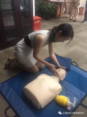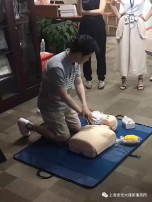 2017年5月19日,上海市光大律師事務所黨支部特別邀瑞金醫院急診科盛主任,為各位律師帶來心肺復蘇、AED使用、急性呼吸道梗阻的救治、簡易包扎、燙傷治療等急救知識培訓,并現場模擬操作。