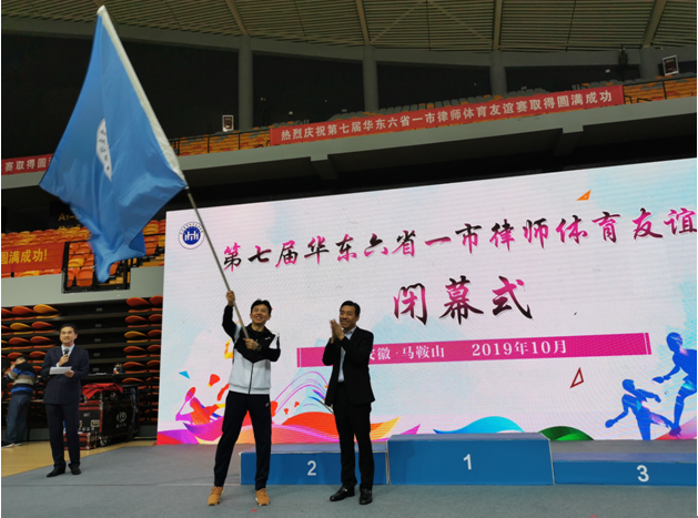 本次比賽加強了華東律師協會間的交流合作,增進了華東律師間的友誼。閉幕式上,上海市律師協會文體和福利委員會主任朱黎庭從安徽省律師協會文體委主任、馬鞍山市律師協會會長周巧龍手中接過了華東六省一市律師友誼賽的會旗。本次比賽雖已落幕,但這份熱情不會因此而消散,明年,我們上海再見。