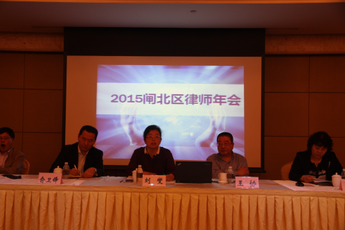 5月29日、30日,由閘北區律工委主辦的2015閘北區律師年會隆重召開。閘北區委常委、副區長劉燮、市司法局副局長王協、市律協會長俞衛鋒、閘北區司法局黨委書記、局長凌淑蓉、市律師協會秘書長萬恩標出席。閘北區發改委主任王葉慶、閘北區投資促進中心副主任李立文受邀為參會律師介紹閘北區域經濟發展形勢和招商引資政策。大會由閘北律工委主任沈彥煒主持,來自全區各律所近90名律師參加了為期兩天的會議。