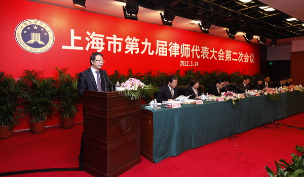 2012年3月24日,上海市第九屆律師代表大會第二次會議在青松城召開。出席的領(lǐng)導(dǎo)有:上海市司法局黨委書記、局長吳軍營,上海市司法局副局長劉忠定,上海市司法局政治部主任劉衛(wèi)萍,上海市律師協(xié)會會長盛雷鳴,副會長陳乃蔚、邵曙范、黃綺、錢翊樑、周天平、管建軍,監(jiān)事長厲明等。