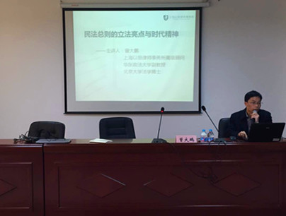 2017年4月7日,我區邀請上海以恒律師事務所高級顧問、華東政法大學曾大鵬教授作了題為“民法總則的立法亮點與時代精神”的講座。