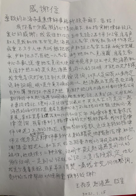 近日,上海市遠東律師事務所收到了市民王女士與趙女士特意送來的感謝信,感謝楊寅彬律師在此前提供公益法律服務時的專業和熱心。