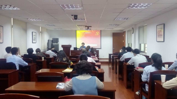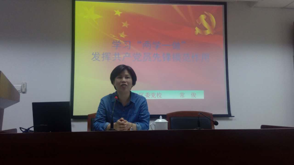 常俊老師圍繞《學習“兩學一做”,發揮共產黨員先鋒模范作用》,進行培訓。她分別從“兩學一做”開展背景及內容、以黨章為鏡 堅決維護黨章黨規的權威性、以習近平總書記重要系列講話精神武裝全黨和做忠誠干凈擔當的合格黨員這四個方面深入淺出的講解,并輔以圖文和案例從黨內正反面對比分析,使“兩學一做”精神入耳入心。