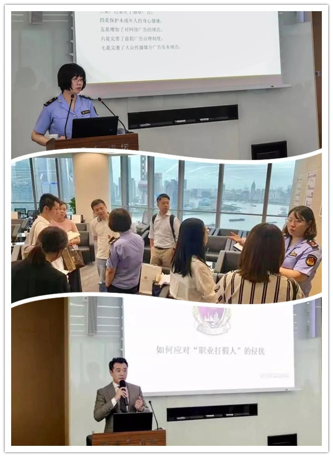 講座特別邀請了虹口區(qū)市場監(jiān)督管理局公平交易科和政策法規(guī)科兩位同志,圍繞如何規(guī)范廣告行為和合同行為、準(zhǔn)確拿捏廣告的尺度、正確擬定合同的條款、應(yīng)對職業(yè)打假人等企業(yè)關(guān)注的熱點(diǎn)問題展開理論與案例相結(jié)合的講解。指導(dǎo)企業(yè)根據(jù)自身需要,尋找有效的方法,防范、應(yīng)對職業(yè)打假人,防止職業(yè)打假人利用公司管理漏洞以打假之名進(jìn)行的敲詐行為。