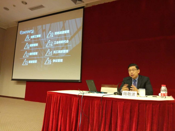 繼1月24日培訓(xùn)班后,本次培訓(xùn)主要介紹了律師參與企業(yè)女職工、勞務(wù)派遣、規(guī)章制度、工會和職工代表大會、續(xù)約、員工離職、解雇與勞動爭議8個模塊的操作實務(wù)。陸敬波律師重點講解了“全面兩孩”政策對企業(yè)女職工管理的影響,《上海市集體合同條例》對企業(yè)民主管理的影響,以及最近熱議的《勞動合同法》修正等問題。