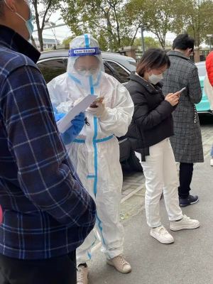l 達(dá)必誠所黨員吳麗霞律師,在靜安區(qū)永和二村做志愿者,主要幫助維護(hù)居民排隊做核酸的秩序,幫助登記檢測二維碼,幫助把檢測試劑交給采樣醫(yī)生。