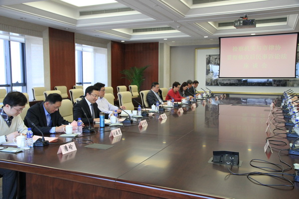 2013年3月12日下午,市律協副會長錢翊樑一行,參加了在市檢察院會議室召開的市檢察機關與市律師協會貫徹修改后民事訴訟法座談會。市檢察院民事行政檢察處副處長邱燕主持會議。市檢察院副檢察長許佩琴、控告申訴處處長廖振華、副處長張愛菁、民事行政檢察處處長丁宏、副處長錢淵、一分院民事行政檢察處處長侯百豐、二分院民事行政檢察處處長王琍、市律協理事、勞動法業務研究委員會主任陸胤、副秘書長劉小禾、監事楊波、民事業務研究委員會主任譚芳、建設工程業務研究委員會主任周吉高、行政法業務研究委員會副主任王昊東、民事業務研究委員會副主任劉巍嵩、委員羅興、業務部主任潘瑜匯聚一堂,共話民事行政檢察工作。