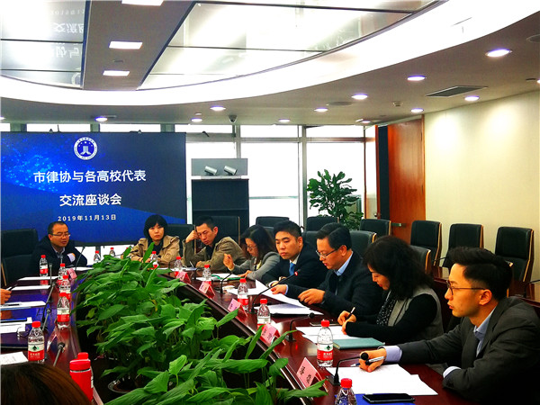 2019年11月13日下午,中國政法大學、河南財經政法大學、西北政法大學、華東政法大學、上海政法學院等部分政法院校十余名教師代表來訪市律協,市律協青年律師工作委員會接待并進行交流座談。座談由市律協青工委主任陸胤主持,副主任張玲、王棟、潘雄、吳穎和市律協公共關系部等參加了座談。