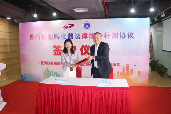 5月12日上午,在閔行區(qū)司法局的指導(dǎo)下,由上海紫竹創(chuàng)業(yè)孵化器有限公司與上海市律師協(xié)會閔行區(qū)工作委員會(以下簡稱“律工委”)共同主辦的“紫竹創(chuàng)業(yè)孵化器法律服務(wù)框架協(xié)議簽約儀式暨閔行區(qū)知識產(chǎn)權(quán)法律顧問團紫竹工作站揭牌儀式”在紫竹創(chuàng)業(yè)孵化器隆重舉行,閔行區(qū)黨委副書記周信根、上海市律師協(xié)會閔行工作委員會主任周郁生、紫竹高新區(qū)常務(wù)副總經(jīng)理夏光、上海紫竹創(chuàng)業(yè)孵化器有限公司總經(jīng)理丁嘉敏等重要嘉賓出席了本次簽約儀式,共同見證紫竹法律服務(wù)工作站的掛牌成立。