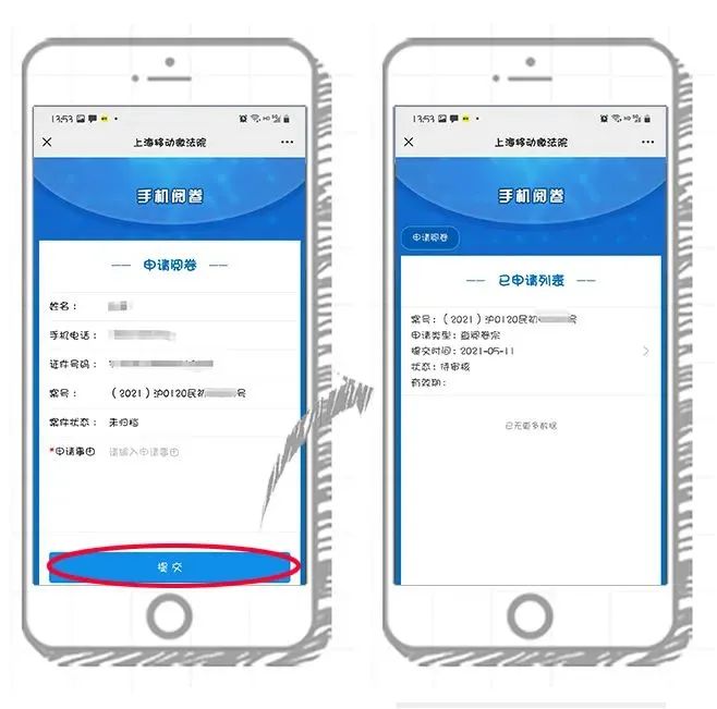 點(diǎn)擊“手機(jī)閱卷”,選中對(duì)應(yīng)案件,填寫申請(qǐng)閱卷信息,確認(rèn)無誤后提交。