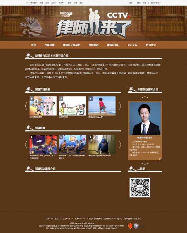 節(jié)目播出的同時,觀眾可在《律師來了》官方主頁的“律師來了互動吧”掃描二維碼后與在線值班律師進行互動,咱們上海就有13位律師參與了在線答疑喲。