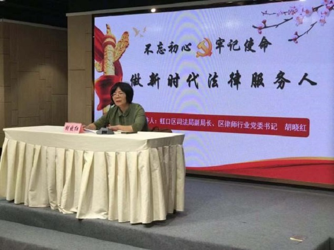 主題活動第一項議程,由虹口區青年律師聯誼會會長、上海如聞律師事務所主任張曄主持,特邀虹口區司法局副局長、區律師行業黨委書記胡曉紅以“不忘初心,牢記使命,做新時代法律服務人”為主題為大家上黨課。胡曉紅同志從什么是共產黨人的初心使命?為何要不忘初心,牢記使命?如何不忘初心,牢記使命?新時代中國律師、司法鑒定人應具有哪些職業素養?四個方面為切入點,要求新時代的法律服務人員提高政治站位、筑牢政治保障,將守好黨的初心、擔好時代使命與履行法律服務的職責統一起來,不斷強化自身使命,提升自身素質,在實現偉大夢想的過程中做新時代的建設者。