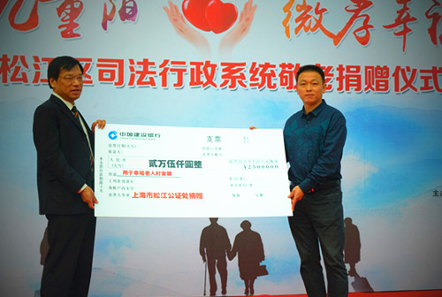 10月27日,松江區司法局、上海市律師協會松江律師工作委員會、松江公證處在松江區葉榭鎮幸福老人村舉行了重陽節敬老活動,區司法局局長莫桂興、副局長陳炳泉、局相關業務部門負責人、松江公證處主任、松江律工委主任、委員及松江區全體老律師參加活動。