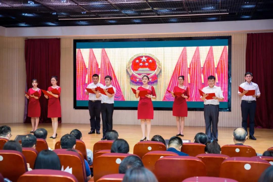 主題大會通過詩朗誦、演講、視頻、采訪、小合唱、情景劇、頒發紀念章、創建授牌、黨員宣誓等形式,生動展示司法行政系統干部守初心擔使命的良好形象,以優異成績向黨的百年華誕獻禮。