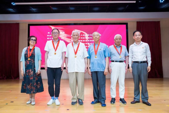 ▲ 區委組織部副部長孫紅兵為局系統老黨員代表頒發“光榮在黨50年”紀念章,傳遞黨中央關懷,向老黨員致敬。